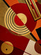 This striking abstract piece captivates with its dynamic interplay of geometric shapes and a rich palette of ruby red, warm gold, and earthy tones. Its modern, sophisticated style creates a vibrant focal point, perfect for enhancing the ambiance of contemporary living rooms, elegant bedrooms, or stylish office spaces.