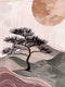 This captivating artwork evokes tranquility with its minimalist landscape and soft, muted tones of dusty rose and sage. A solitary, elegant tree stands against a warm, celestial body, creating a serene focal point. Perfect for adding a touch of modern sophistication and calm to living rooms, bedrooms, or office spaces, it beautifully complements a refined decor aesthetic.