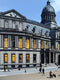 This elegant artwork captures the stately presence of a historic city hall under a clear sky. Its sophisticated blend of deep blues, warm golds, and muted grays brings a sense of timeless grandeur. Perfect for adding a touch of classic urban charm and architectural beauty to any living room, study, or office space.