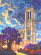 This enchanting artwork captures a majestic cathedral bathed in the soft glow of twilight, surrounded by vibrant, fantastical trees. The rich blues, purples, and warm golden hues create a serene yet magical atmosphere, perfect for adding a touch of whimsical elegance to any living room, bedroom, or office space. Its unique style blends architectural grandeur with dreamy fantasy.