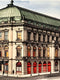 This elegant artwork captures old-world European grandeur with its intricate architectural sketch and striking verdigris dome. Warm orange-yellow light spills from the windows, contrasting beautifully with the cream facade and touches of bold red, lending a sophisticated, moody feel. Perfect for adding a classic, cosmopolitan touch to any living room or stylish office.