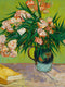 This impressionistic masterpiece by Van Gogh captures the vibrant energy of nature with its bold brushstrokes and lively color palette. Soft pink and white blossoms burst forth from a deep blue vase, set against a striking lime green background. The painting brings a touch of elegant, floral sophistication to any space, infusing a room with warmth and artistic character.
