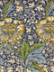 This ornate floral wallpaper, with its rich navy background and intricate motifs in cream, gold, and verdant green, evokes a timeless Arts and Crafts aesthetic. Its elegant pattern adds a cozy, sophisticated warmth, making it perfect for creating a classic, inviting atmosphere in living rooms or bedrooms.