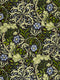This intricate wallpaper pattern, reminiscent of William Morris's Arts and Crafts style, features a dense tapestry of flowing leaves and delicate blue flowers. The rich, earthy color palette of deep greens, muted blues, and hints of red on a dark background creates a sense of natural elegance and sophistication. It adds a timeless, cozy, and luxurious feel, perfect for a classic living room or a serene bedroom retreat.