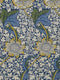 This elegant wallpaper features a classic botanical pattern with intertwining leaves and stylized flowers. The rich indigo and cream color palette, accented with soft gold, creates a serene yet sophisticated mood. Its timeless, intricate design adds a touch of historical charm, making it a perfect statement piece for enhancing the tranquility and style of a living room or bedroom.