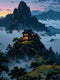 This enchanting artwork captures a serene mountain cabin bathed in the soft glow of twilight. Its harmonious blend of deep blues, warm oranges, and lush greens evokes a tranquil, dreamy mood. Perfect for creating a cozy and inviting atmosphere, this piece adds a touch of peaceful escapism and natural beauty to any living room, bedroom, or office space.
