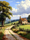 This painterly scene captures the tranquil beauty of an English countryside cottage. The rich greens and earthy brown tones evoke a peaceful, pastoral mood. A classic piece of art that brings a touch of rustic charm and warmth to a living room, office, or cozy bedroom retreat.