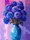 Elevate your space with the striking beauty of "Cobalt Mums in Violet Hues." This modern artwork features vibrant blue chrysanthemums in a textured vase, set against a rich tapestry of purples and pinks. Its bold colors and impressionistic style create a serene yet lively focal point, perfect for adding a touch of elegance and artistic flair to any living room, bedroom, or office.