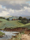 Escape to the serene rolling hills of this classic landscape. Featuring tranquil green pastures, a winding creek, and a distant farmhouse under a dramatic, cloud-dappled sky. The soothing earth tones and traditional style evoke peace and comfort, bringing a timeless, calming elegance to any living room, bedroom, or office space.