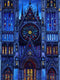 This stunning piece features the dramatic grandeur of a Gothic cathedral at night. The striking contrast between deep indigo blues and the vibrant, jewel-toned stained glass windows creates a mood of mystical elegance. Its verticality and rich detail make it a captivating focal point, adding regal sophistication to any living room or entryway.