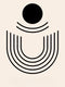 This elegant minimalist print features a striking balance of geometric forms. The clean lines of the arches and the solid black dot create a sense of serene harmony. Set against a soft, neutral background, this piece embodies modern simplicity, perfect for adding a sophisticated and calming touch to any contemporary living room, bedroom, or office space.