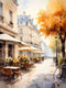 This enchanting watercolor captures the serene beauty of a Parisian street in autumn, bathed in warm golden and russet tones. Its soft, impressionistic style evokes a tranquil and inviting mood, perfect for adding a touch of elegance and warmth to living rooms, bedrooms, or offices.