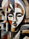 This striking Cubist-style portrait, with its harmonious blend of earthy tones, rich blacks, and warm terracotta, brings an air of elegant sophistication to any room. Its captivating composition and clean lines make it a powerful statement piece, perfect for modernizing a living room, office, or bedroom.