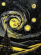 This striking, modern abstract piece captures a mystical night with its vibrant gold against a deep charcoal and black backdrop. The swirling celestial bodies and solitary pine evoke a dramatic, energetic yet serene mood. An elegant focal point that instantly enhances the sophistication of any living room or bedroom.