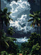 This captivating artwork draws you into a lush tropical landscape under a dramatic, cloud-filled sky. The rich greens of the foliage contrast beautifully with the ethereal blues and grays of the clouds, creating a serene yet powerful mood. Perfect for adding a touch of exotic tranquility and natural grandeur to living rooms, bedrooms, or offices.